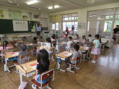 6月28日(月)分散授業参観の1日目。保護者の皆様には、ソーシャルディスタンスを保って静かにご参観いただき、ありがとうございました。子どもたちも、緊張しつつ、真剣に学習する姿を見せてくれたと思います。