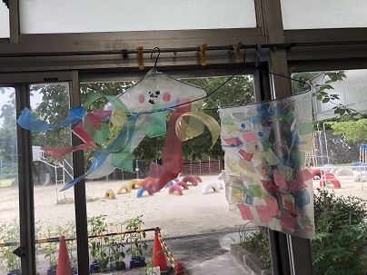 1年生の教室では、明るい声が聞かれ、6組さんでは、図工で「ひらひらゆれる」飾りをつくりました。