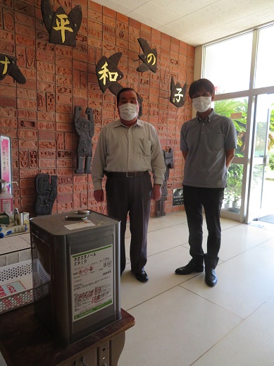 9月10日(金)明和工業株式会社様(代表取締役社長 杉浦義忠様)から、アルコール(消毒液)を寄贈していただきました。今回が3度目となります。
