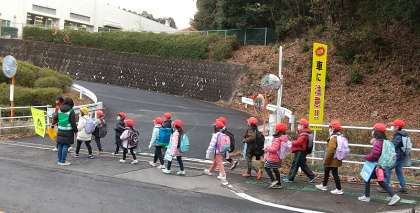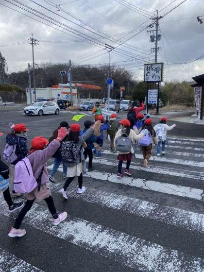1月14日(金)、まちエンテーリングで、保護者のボランティアの方が各ポイントに立って、子どもたちの見守りをしてくださいました。