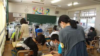 授業に参加して子どもたちの補助をしたり、本の整備をして図書室を使いやすいようにしたり、ボランティアさんに見守られながら、今日も子どもたちは楽しく過ごしています。