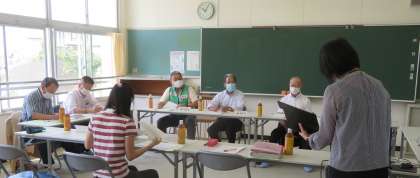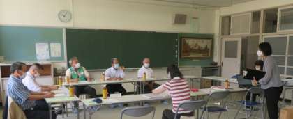 6月23日(木)、本部長様(下野見自治区区長)はじめ、市議会議員様、平山、平和町、水源町の各自治区区長様、PTA会長様の協議会委員の皆様をお迎えして、2年ぶりに、第1回教育協議会を開催することができました。