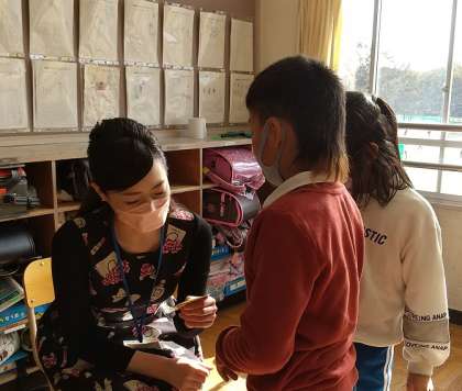 2年生では、これまでかけ算の九九を一生懸命覚えてきました。いよいよ12月に入って九九検定です。どの段もしっかりと覚えられたかを、保護者ボランティアさんに見ていただいています。