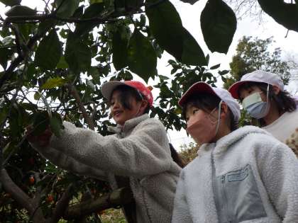 1月25日に2・4年生が特色ある学校づくり推進事業として、平和の森果樹園で、ミカン狩りを行いました。ミカン、レモン、ハッサクのたくさんの果物が実り、木の枝が重そうに垂れ下がるほどでした。