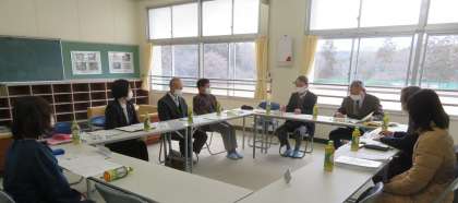 2月24日(金)、本部長(下野見自治区区長様)をはじめ、新下野見自治区区長様、平山自治区区長様、平和町自治区区長様、水源町自治区区長様、平和小学校PTA会長様の協議会委員の皆様をお迎えして、第2回教育協議会を開催いたしました。