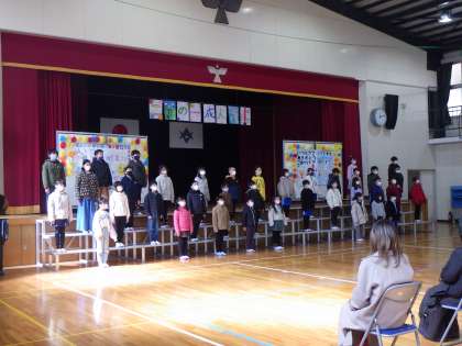 将来へ向けての決意や、おうちの方への感謝を伝えました。体育館の飾りつけ、「あなたにありがとう」の合唱、司会、招待状など、より良い式を目指して自分たちで話し合いながら式をつくり上げました。