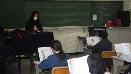 1組の音楽の学習の様子です。これからどんな歌が歌いたいか話し合っています。
