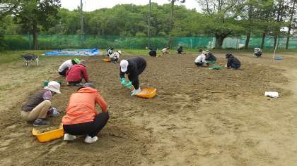 校庭の東側の雑草を刈ったり、抜いたり、雑草がこれ以上広がらないよう土を耕したり、側溝の泥土の取り除きまで、本当に大変な作業でした。