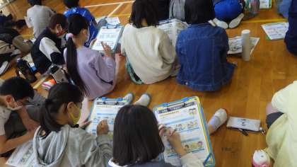 5月10日に豊田市消費生活センターの方や笑劇波の方をお招きしてネットトラブルに合わないようにするにはどうしたらいいのか子供たちが理解しやすいようにクイズにしたり劇を開いたりして学習しました。