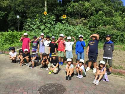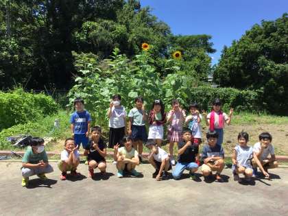 3年生が理科の学習で育てていたヒマワリがぐんぐん成長してあっという間に子どもたちの背を抜かし、きれいな花を咲かせました。