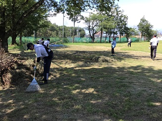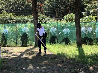 7月21日(金)暑い中、トヨタ工業学園専門部の方や自治区の方、ボランティアの方が、平和小学校の西門付近の法面やグランド南側の法面の環境整備をしてくださいました。おかげで大変すっきりしました。ありがとうございました。