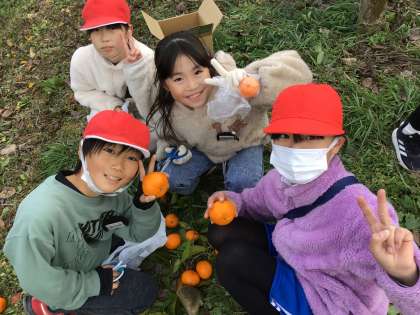 今年もみかんが恋しい季節となりました。今年のみかんは甘さも酸っぱさもちょうど良く、おいしい実がたくさんなったので、2年生と4年生でみかん狩りを行いました。どのみかんにしようか選ぶ時も、わくわくして楽しく、笑顔いっぱいのみかん狩りになりました。平和小学校には、もう1種類はっさくの木があります。そちらの食べごろはもう少し後なので、おいしくなる頃に再び収穫にいこうと思います。