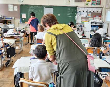授業に参加して子どもたちの補助をしたり、本の整備をして図書室を使いやすいようにしたり、そして、水泳授業見学者の見守りをしたり、ボランティアさんに見守られながら、今日も子どもたちは健やかに過ごしています。
