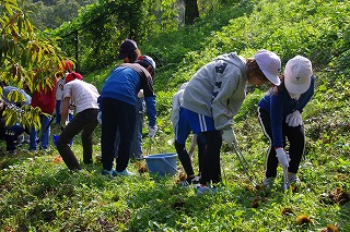 9月30日、5年生と3年生が一緒に栗拾いをしました。
