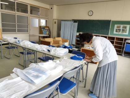 10月11月の2回にわたり、体操服リユース品の分別、仕分け作業を行いました。譲渡してくださった物は洗濯等がしてあり、皆様のお気遣いが感じられました。