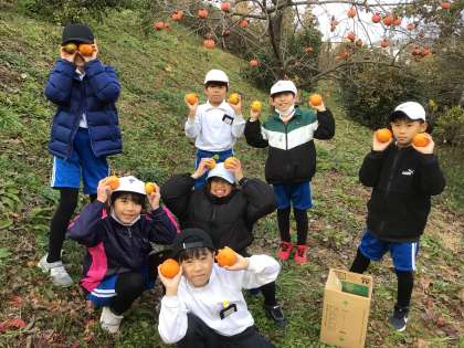 今年もミカンが恋しい季節となりました。しかしながら、今年度はミカンが不作で、例年2学年が一緒に行っていたミカン狩りが残念ながらできませんでした。4年生有志でミカン畑へ行き、収穫できたのは約40個。来年はまたおいしい実がたくさんなって、みんなで楽しくミカン狩りができるといいなと思います。もう1種類のハッサクの木も実が少ないようですが、2月ごろに再び収穫に行こうと思います。