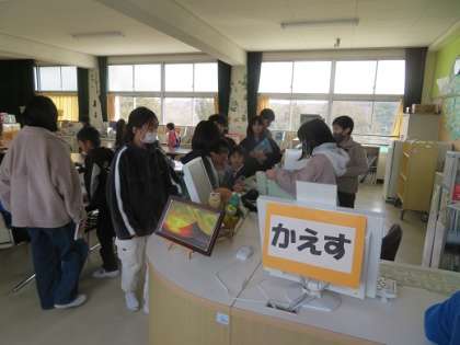 図書委員会が企画したゲームやクイズに取り組みながら、たくさんの子どもたちが本に親しみました。