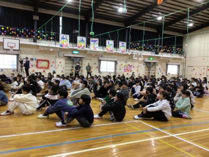 楽しいクイズや思い出のスライドショーを楽しみ、5年生からのエール、そして校旗の引き継ぎ、最後は6年生から「栄光の架橋」の歌のプレゼント。忘れられない会となりました。