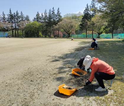 4月16日(水)、晴天の中、今年度も早い時期から、地域・保護者ボランティアさんにご協力いただいて、校内整備を行いました。