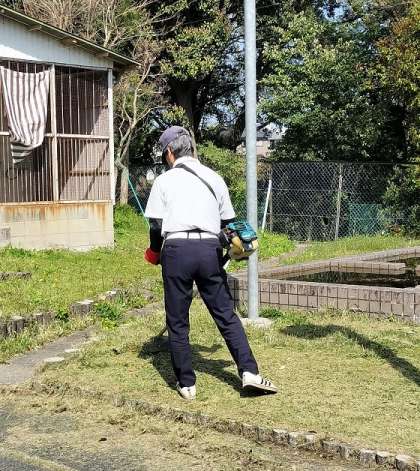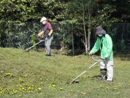 今回は、校庭南側や遊具周辺の雑草を抜いたり刈ったりしてくださいました。