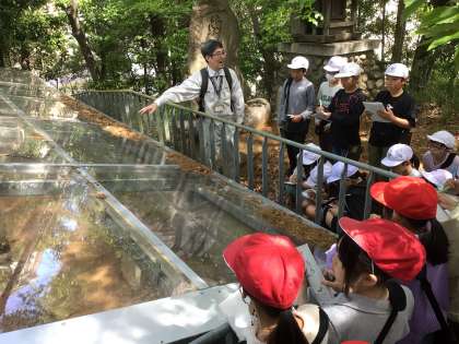 5,6年生は、地域の再発見により自分たちの地域に愛着をもつことなどを目的に、豊田大塚古墳まで出かけました。現地では学芸員による説明を聞き、地域の歴史について理解を深めることができました。