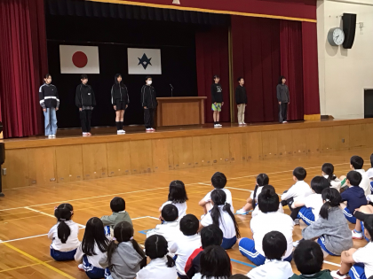 5月12日(月)の朝、平和っ子集会(全校集会)を行いました。集会では、各委員会の委員長が今年度の目標や活動内容を発表しました。代表委員の委員長からは、平和小学校が元気なあいさつの飛び交う学校となるよう、あいさつについての取り組みについて、協力のお願いがありました。頷きながら委員長の話を聞く児童の姿が多く見られました。各委員会の今後の活動が楽しみになる集会となりました。