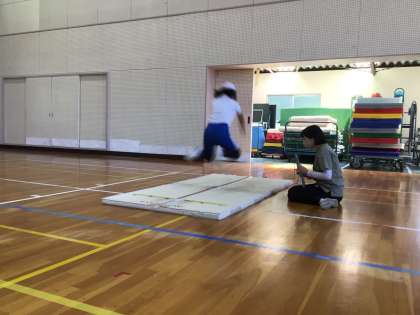 気持ちの良い五月晴れの中、今日から2日間の日程で、体力テストを行っています。グラウンドでは、ソフトボール投げと50m走を、体育館では、立ち幅跳び、長座体前屈、そして、シャトルランを行います。どの児童も、自分なりに精一杯取り組んでいる様子が見られました。昨年度からどれだけ記録が伸びているか楽しみです。