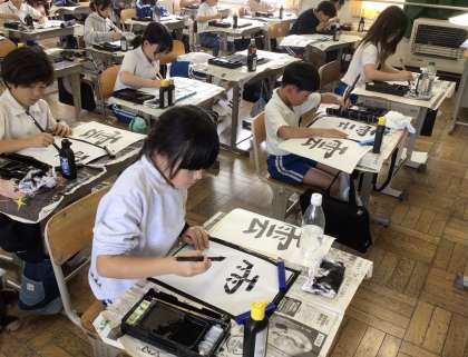 4年生の書写の授業では、「雲」を書きました。無言で真剣に書に向かう姿が見られました。筆がねないように注意しながら取り組んでいました。