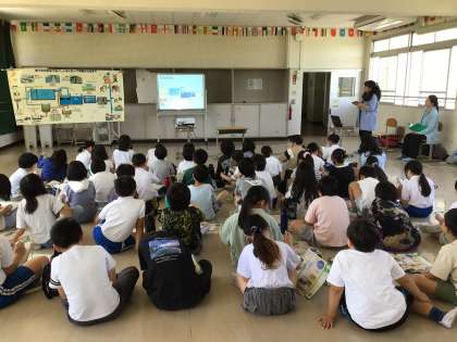 4年生は、「水」をテーマに総合的な学習の時間で学習を進めています。本日は、豊田市水道サービス協会の方を講師にお迎えし、「水道に関する説明会」の出前授業を受けました。授業では、水道の歴史や水道の水がどのようにして家庭に届くかなどについて学びました。熱心にメモを取りながら授業を聞く児童の姿が見られました。今後、矢作川の水質調査などを通して、学習を深めていく予定です。
