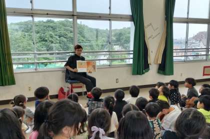 今日もあいにくの雨模様だったので、広い教室のイングリッシュルームで行いました。そして、50名程度の子どもたちが「トドにお届け」という海の生き物の物語を聞いて楽しみました。