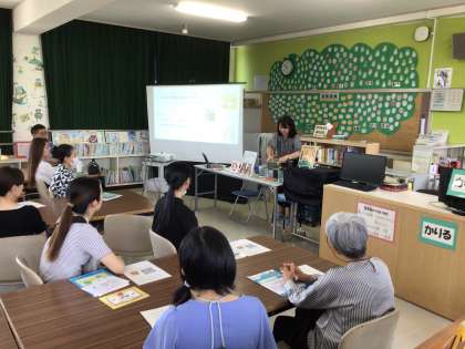 今回の講演会では、愛知教育大学から講師の先生をお招きし、親子読書におすすめの絵本の紹介や、本の内容を実体験と結びつけることの大切さなどについて、実践を交えながら楽しくお話しいただきました。