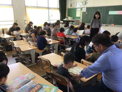 会の後半では、親子で選んだ本を一緒に読む活動を行いました。読み聞かせるお父さんやお母さんの声に熱心に耳を傾ける児童の姿やクイズやパズルなどに親子で楽しく取り組む様子などが見られました。