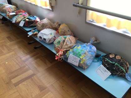 2年生の図工の授業では、クシュクシュにした紙袋を使って、動物などを模した思い思いの作品作りに取り組みました。色紙で装飾したり色を塗ったりなど様々な工夫がなされた作品が見られました。
