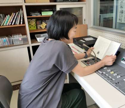 9月19日(金)、昼の放送の読み聞かせに、司書さんが参加してくださいました。