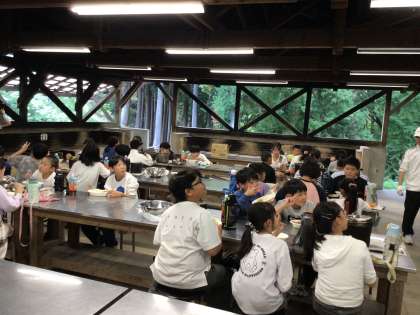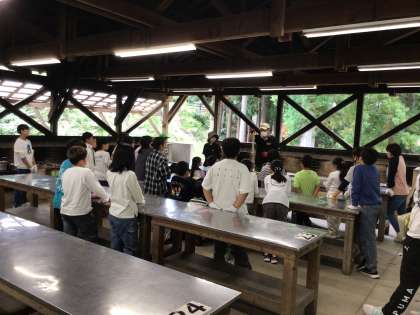 午後からは火起こしとカレーライス作りに取り組みました。グループで協力して火起こし器を押し、火がついた時には、ジャンプして喜びました。