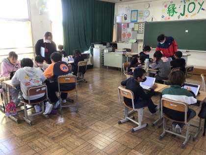 両学年とも、ICT支援員さんに助言を受けながら学習を進めるようすが見られました。