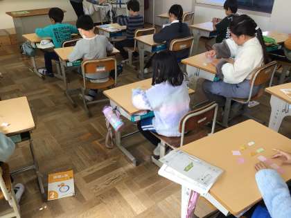 3年生の道徳の授業では、「バスの中で」を題材に「親切」について考えました。おばあさんに席をゆずるべきか葛藤した末、席をゆずることに決めた主人公の気持ちについて、「席をゆずったほうが後で後悔しないから」などの意見が聞かれました。