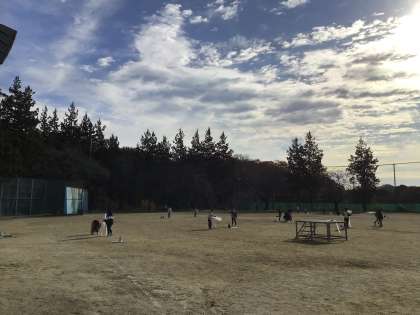 1年生は生活科の授業で凧上げを行いました。風のない穏やかな天候であったため、走り回りながら凧を上げる児童の様子が見られました。