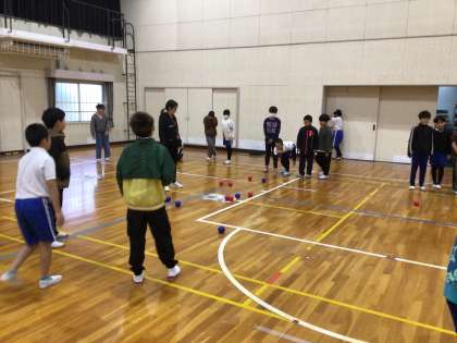 その後、児童はポッチャとジャベボールの投てきの体験を行いました。湯上さんに投げ方を教わりながらジャベボールを投げたり、歓声をあげながらボッチャに夢中になって取り組んだりする児童の姿が見られました。