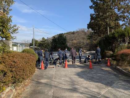 12月23日(火)、平山自治区のご協力によりトヨタ工業学園の学生ボランティア20名の生徒さんに校内整備を行っていただきました。西門付近の法面で伐採してあった木の枝等の回収作業と校舎南側の側溝にたまった落ち葉や泥土等の除去作業を行ってくださいました。トヨタ学園、平山自治区のみなさま、ご協力、誠にありがとうございました。