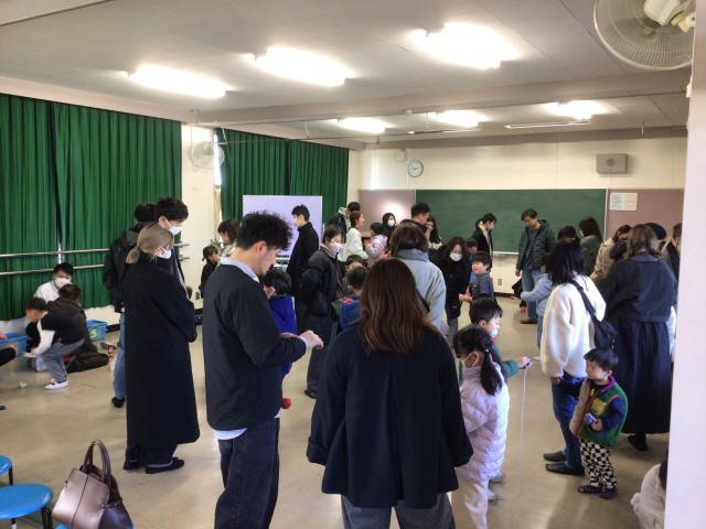 発表の後、保護者の方とあやとりやけん玉をして一緒に遊ぶようすが見られました。