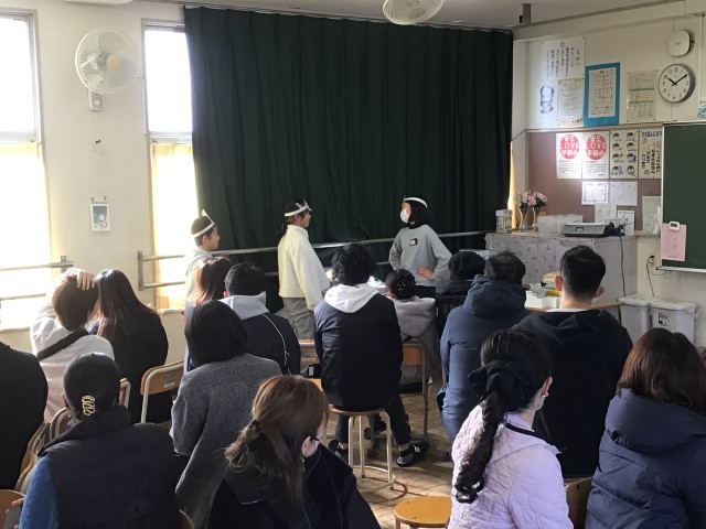 5年生は、総合的な学習の時間で調べたSDGsについて発表しました。省エネなど、持続可能な社会をつくるために必要なことをクイズや劇などを通して楽しく伝えるようすが見られました。
