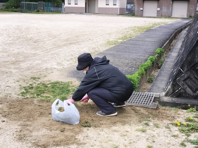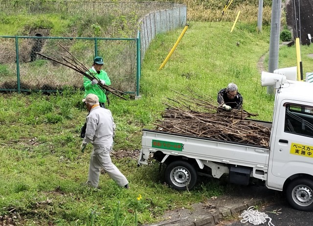 4月15日(水)、天候が心配され校内整備は中止となりましたが、ご厚意により数名のボランティアさんが、刈った枝等を集めて運搬したり、草取りをしてくださいました。
