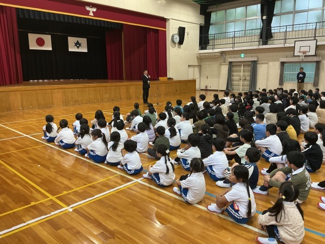 校長先生からは、通学路に立っているとみんなが挨拶をしてくれることへのお礼や、教室で「ありがとう」が飛び交っている姿が見られてうれしかったことなどのお話がありました。