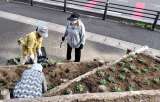 10月31日(木)、秋晴れの中、110階段横の花壇のパンジー、ビオラの花植えが...