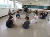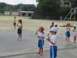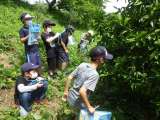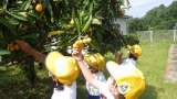 1年生が平和の森を散策し、梅と枇杷の実を収穫しました。枇杷の木には、たくさんの...
