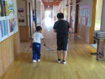 1年生も入学して1か月半が経ち、だいぶ学校生活に慣れてきたようです。縦割り生活班で行っている清掃活動も上級生のお兄さん、お姉さんに教えてもらいながら、一生懸命頑張っています。上級生も1年生と一緒に掃除をしながら、優しく丁寧に教えている姿を見かけます。