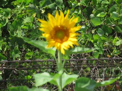 5月に国谷の篠田さんからいただいたひまわりの第1号の花が咲きました。太陽に向かって花を咲かせています。他のひまわりたちもこれから次々に咲きそうです。また、一緒にいただいたゴーヤも大きな実をつけました。こちらもこれからどんどん収穫できそうです。夏休みの楽しみがまた一つ増えました。