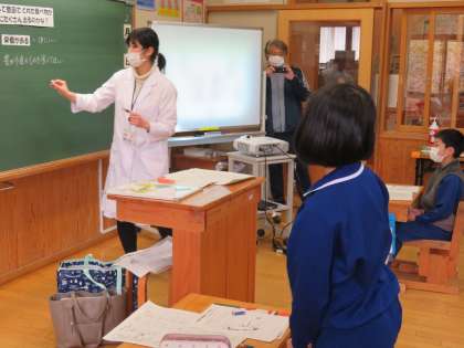 15日に栄養教諭の柴田先生、公務手の松浦さん、梅村さんをお迎えして給食感謝会を開きました。給食に関するクイズの後、全校児童でお世話になっている3人の方にメッセージを送りました。5限には、4年生が柴田先生から給食に出る豊田市の産物についての授業を受けました。給食を作ってくださるすべての方に感謝するよい時間となりました。
