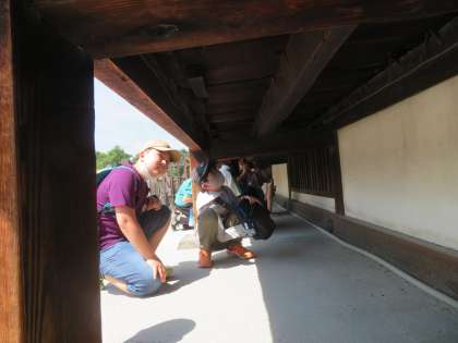 金閣寺では、その美しさに見とれ、二条城では、ウグイス張りの仕組みを目で確かめました。